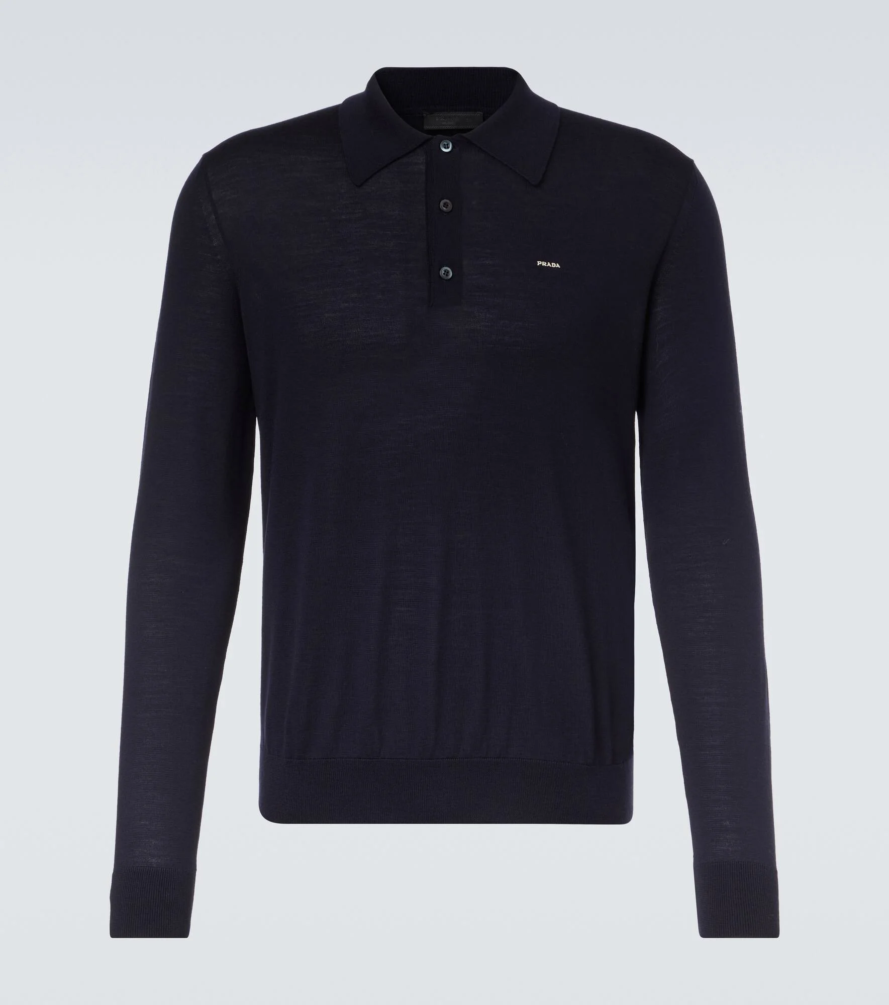 Prada embodies modern sophistication, blending timeless Italian craftsmanship with an innovative spirit. Knitted from soft virgin wool, this polo sweater features a classic fit and the brand's subtle logo embroidered on the chest. Product Details - Material: 100% virgin wool - Care instructions: dry clean - Made in Italy - Color: blue - Designer color name: Blue - Item color: blue - Contains non-textile parts of animal origin - Collar: polo collar - Cuff: ribbed - Item number: P01125268 Size & Fit - True to size - For a looser fit, we recommend taking one size up - Slim fit - Slightly stretchy fabric - Falls to the hip - Height of model is 189cm-74.5" and wears a size 50