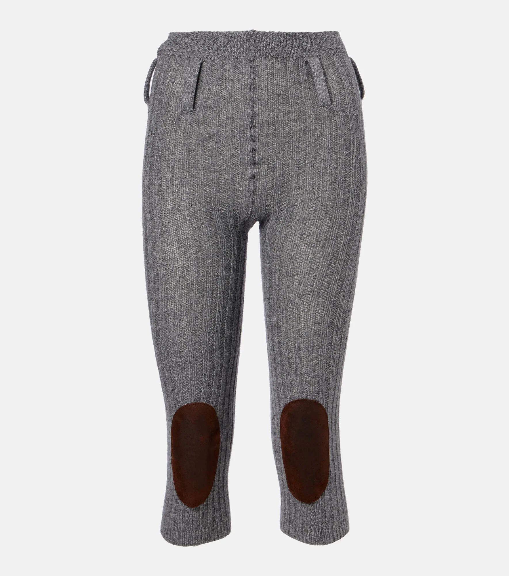 Prada takes Italian heritage into a distinctly modern direction with a streamlined and fashion-forward approach. Finished with suede knee patches and belt loops, these capri pants are expertly ribbed-knit from wool and cashmere. Product Details - Material: 70% wool, 30% cashmere - Care instructions: dry clean - Made in Italy - Color: grey - Designer color name: Grey - Insert: 100% lamb leather - Contains non-textile parts of animal origin - Item number: P01132949 Size & Fit - True to size - Elasticated waist - Stretchy fabric - Skinny leg - High-waisted - Height of model is 175cm-69" and wears a size 1