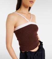 Prada takes Italian heritage into a distinctly modern direction with a streamlined and fashion-forward approach. Made from wool and cashmere, this top features adjustable shoulder straps and a ribbed-knit hem. Product Details - Material: 70% wool, 30% cashmere - Care instructions: dry clean - Made in Italy - Designer color name: Moro - Item color: brown, pink - Adjustable shoulder straps - Hem: ribbed - Item number: P01110571 Size & Fit - True to size - Cinched waist - Stretchy fabric - Slightly cropped - The model seen in the picture is 178cm-5'10" and wearing a size IT 40