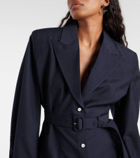 Product Details - Material: 75% wool, 25% mohair - Care instructions: do not wash - Made in Italy - Designer color name: Bleu - Attached belt - Closure: single-breasted - Cuff: buttoned - Contains non-textile parts of animal origin - Item number: P00916672 Size & Fit - True to size - Oversized shoulders - Shoulder pad inserts - Loose fit, comes with belt - Non-stretchy fabric - Falls below the hip - The model seen in the picture is 178cm-5'10" and wearing a size IT 40