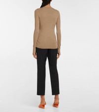 This lightweight sweater from Prada will be your go-to season after season. Finished with the brand's logo intarsia at the chest. this rib-knit style is made from a luxurious mix of wool and silk. Product Details - Material: 93% virgin wool, 5% silk, 1% elastane, 1% polyamide - Care instructions: dry clean - Made in Italy - Designer color name: Cammello - Item number: P00695291 Size & Fit - True to size - Fitted - Falls below the hip - The model seen in the picture is 178cm-5'10" and wearing a size IT 40