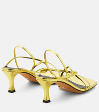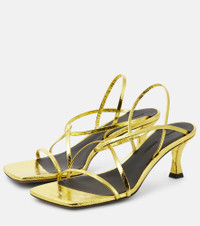 Product Details - Upper: leather - Lining: leather - Sole: leather insole and sole - Toe shape: square open toe - Made in Italy - Includes: dust bag, shoe box, extra heel tips - Designer color name: Gold - Item number: P00882365 Size & Fit - True to size - European sizes - 6cm-2.5" heel (size EU 38)