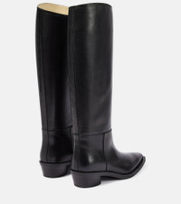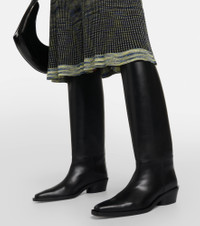 Proenza Schouler's Bronco knee-high boots are a modern minimalist staple. Designed for a pull-on fit, these shoes are made from leather and feature a squared-edge point toe and block heel. Product Details - Sole: leather insole and sole - Toe shape: pointed toe - Upper: leather - Comes with a box - Designer color name: Black - Made in Italy - Comes with dust bag - Item number: P00821872 Size & Fit - True to size - European sizes - 4,5cm-2" heel (size EU 38) - 40cm-15.5" shaft height (size EU 38) - 38cm-15" shaft width (size EU 38) - shaft width measured on largest part of boot