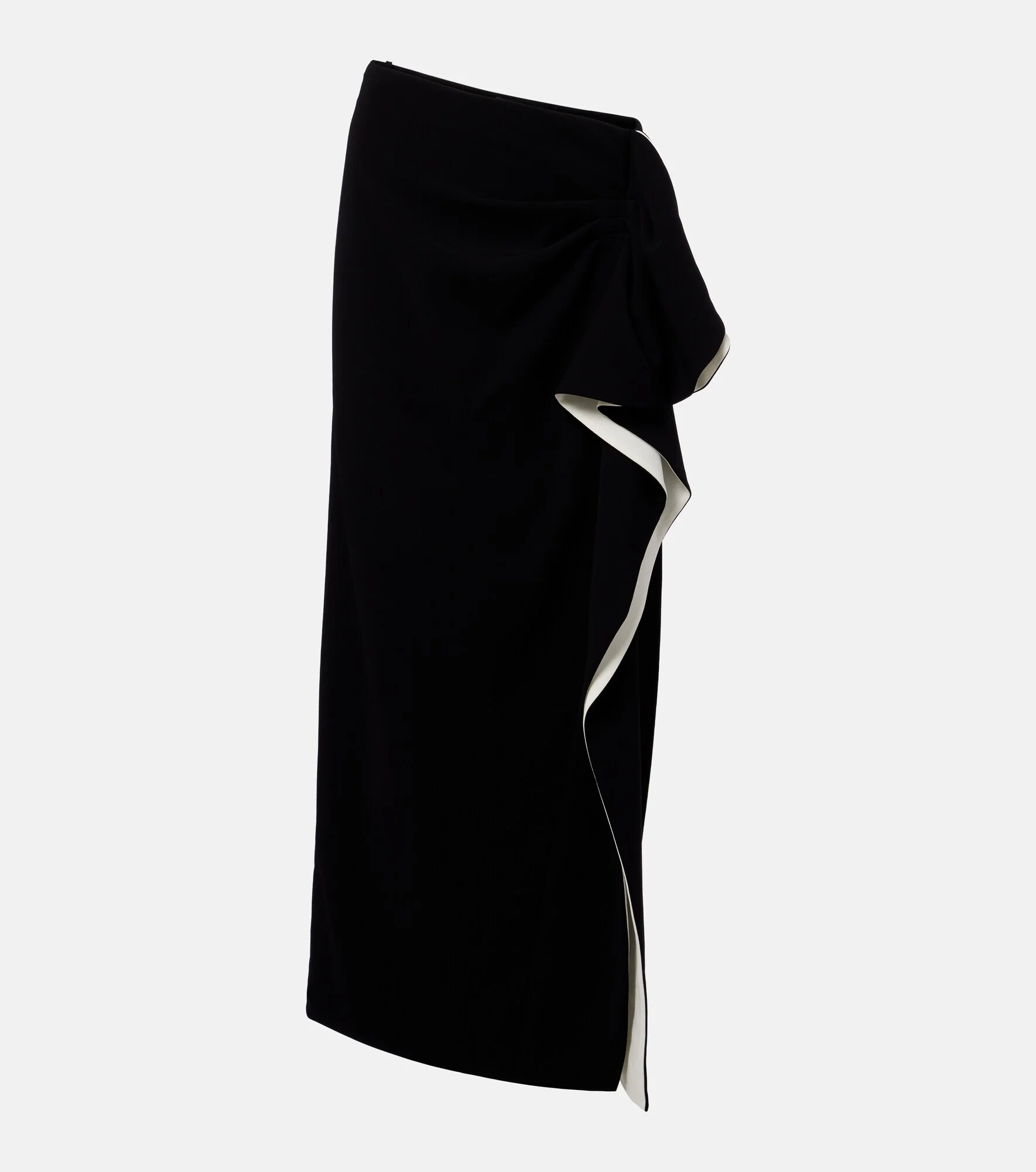 Drawing inspiration from contemporary art, Proenza Schouler ensures each design leaves a lasting impression. The Cella maxi skirt is crafted from double crepe and boasts a cascading, two-tone ruffle at the side front. Product Details - Material: 70% triacetate, 30% polyester - Care instructions: delicate dry clean - Made in China - Color: black - Designer color name: Black/Ivory - Closure: concealed zipped side - Short vent - Item number: P01149064 Size & Fit - True to size - Stretchy fabric - The model seen in the picture is 178cm-5'10" and wearing a size US 4