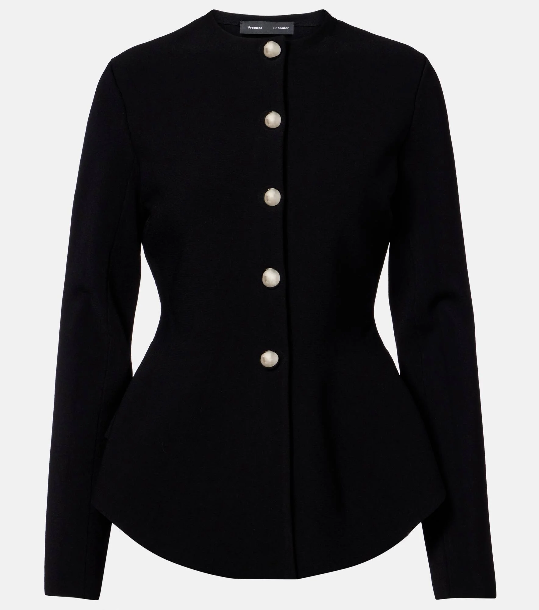 Drawing inspiration from contemporary art, Proenza Schouler ensures each design leaves a lasting impression. The Dasha jacket has a dramatic peplum silhouette and silver-toned domed buttons down the front. Product Details - Material: 62% viscose, 36% polyamide, 2% elastane - Care instructions: dry clean - Made in China - Color: black - Designer color name: Black - Closure: buttoned front - Item number: P01125976 Size & Fit - True to size - Cinched waist - Stretchy fabric - Falls below the hip - The model seen in the picture is 178cm-5'10" and wearing a size XS
