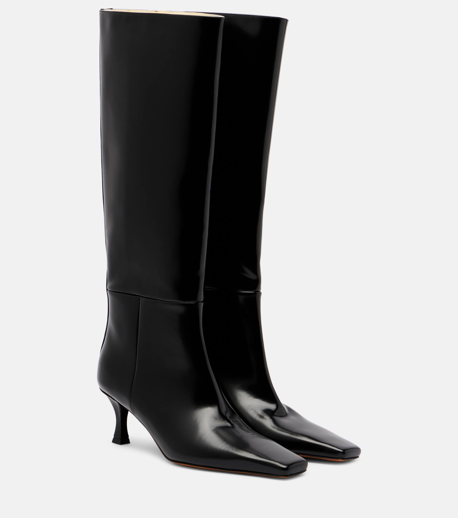 Drawing inspiration from contemporary art, Proenza Schouler ensures each design leaves a lasting impression. These knee-high boots are made from leather with a trapezoid-shaped toes. Product Details - Upper: leather - Lining: leather - Sole: leather insole and sole - Toe shape: square toe - Made in Italy - Includes: shoe box - Designer color name: Black - Item color: black - Item number: P01077437 Size & Fit - True to size - European sizes - 5,5cm-2" heel (size EU 38) - 39cm-15.5" shaft height (size EU 38) - 37,5cm-15" shaft width (size EU 38) - shaft width measured on largest part of boot