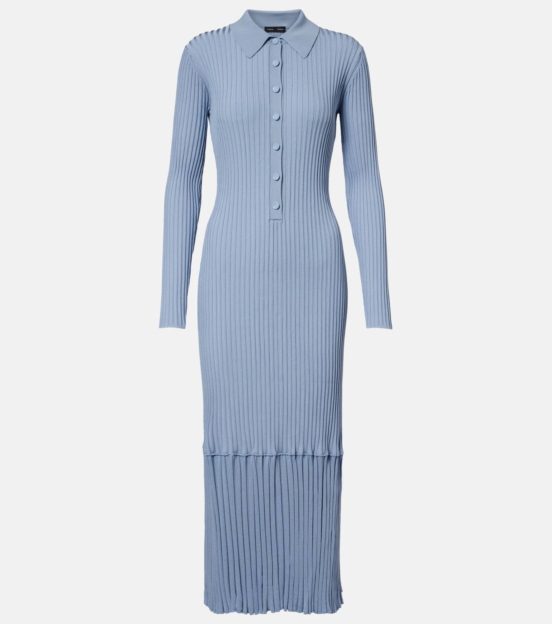 Drawing inspiration from contemporary art, Proenza Schouler ensures each design leaves a lasting impression. The Luiza ribbed-knit sweater dress has a polo collar and a tiered skirt detail. Product Details - Material: 80% viscose, 11% polyamide, 9% polyester - Care instructions: dry clean - Made in China - Color: blue - Designer color name: Pale Blue - Trim: 78% viscose, 22% polyamide - Closure: partially buttoned front - Item number: P01125975 Size & Fit - True to size - Fitted - Stretchy fabric - The model seen in the picture is 178cm-5'10" and wearing a size XS