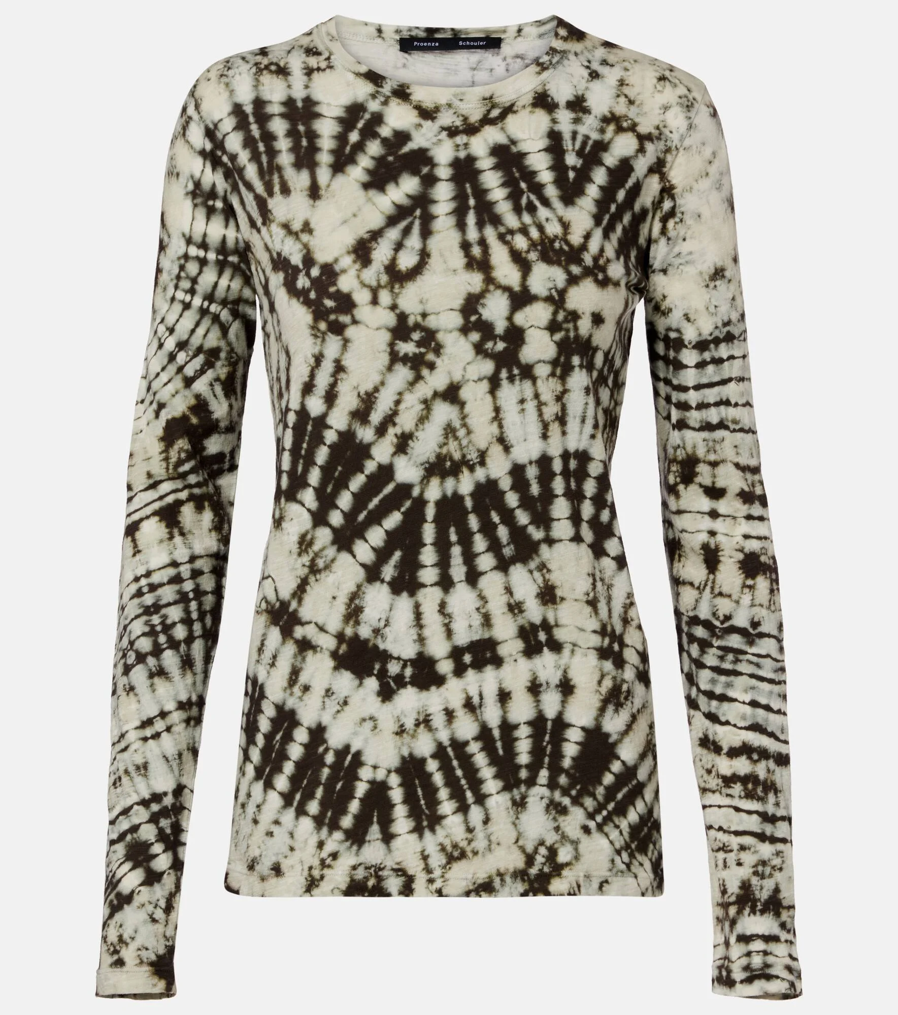 Drawing inspiration from contemporary art, Proenza Schouler ensures each design leaves a lasting impression. The Mia top is crafted in the USA from lightweight cotton tissue jersey and features a tie-dye pattern. Product Details - Material: 100% cotton - Care instructions: dry clean - Made in the USA - Color: green - Designer color name: Caper Multi - Item number: P01125968 Size & Fit - True to size - Fitted - Stretchy fabric - Falls below the hip - The model seen in the picture is 178cm-5'10" and wearing a size XS