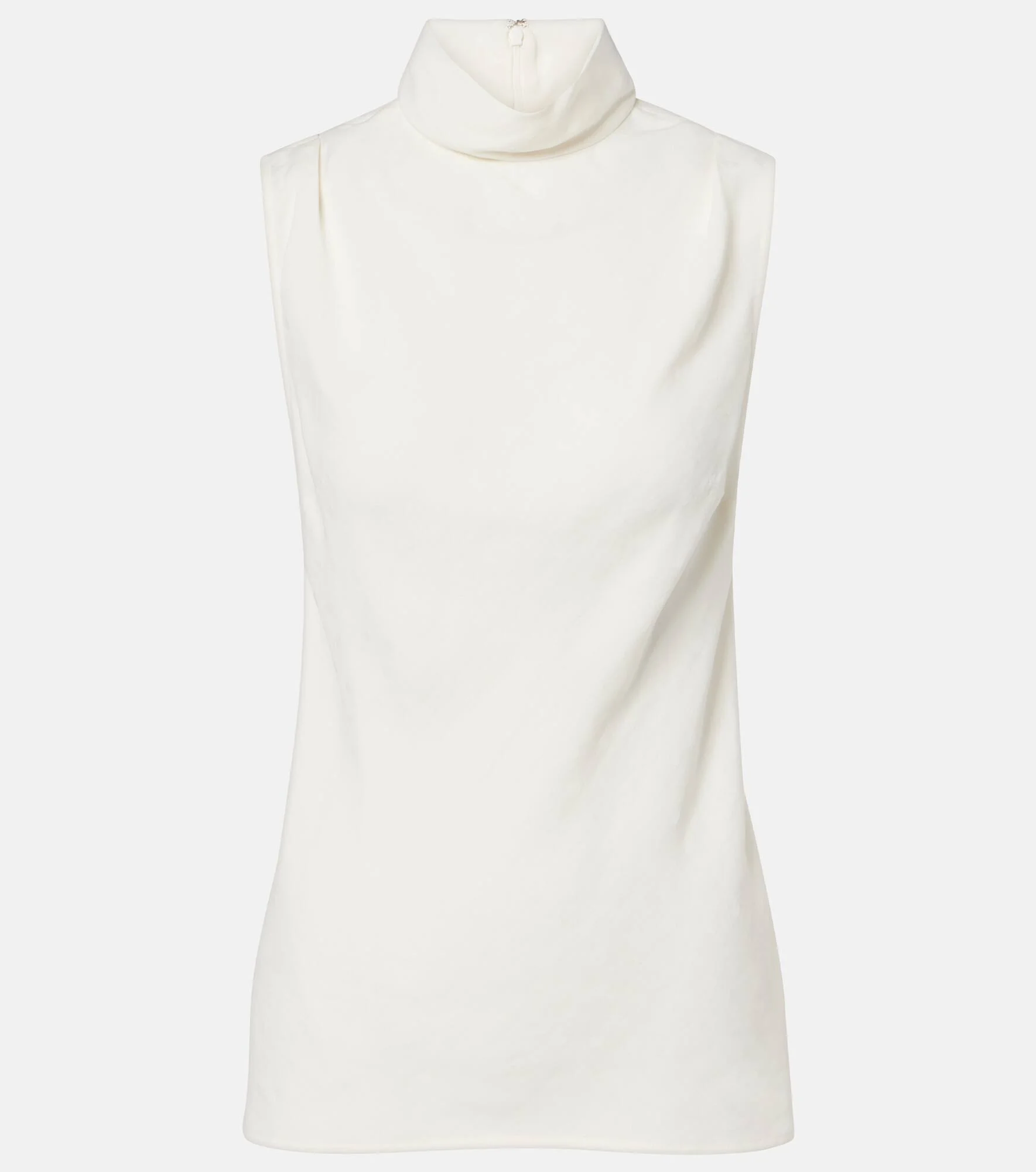 Drawing inspiration from contemporary art, Proenza Schouler ensures each design leaves a lasting impression. The Taryn top is tailored to a loose silhouette with a sleeveless style for effortless styling. Product Details - Material: 51% Tencel®, 49% viscose - Care instructions: dry clean - Made in China - Color: white - Designer color name: 2723+074 - Item color: white - Collar: mockneck - Closure: invisible zipper - Item number: P01125985 Size & Fit - True to size - Cinched waist - Non-stretchy fabric - Falls below the hip - The model seen in the picture is 178cm-5'10" and wearing a size US 4