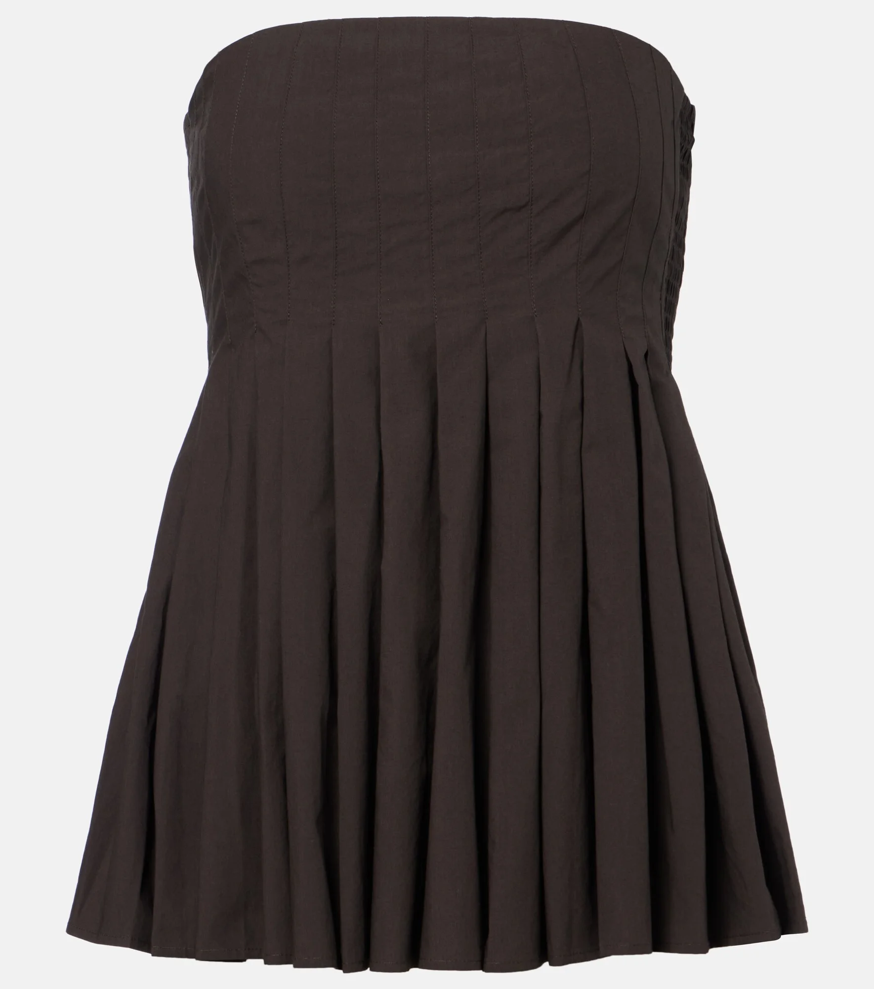 Proenza Schouler's White Label – PSWL to insiders – diffuses its subversive main line into styles for everyday wear. The Avine top is crafted from cotton and features a distinctive strapless peplum silhouette with pleated detailing. Product Details - Material: 100% cotton - Care instructions: machine wash at 30 degrees - Made in China - Color: brown - Designer color name: Coffee - Lining: 100% cotton - Closure: concealed zipped side - Item number: P01149083 Size & Fit - Fits large to size - we recommend trying one size smaller - Strapless - Cinched waist - Non-stretchy fabric - Falls below the hip - The model seen in the picture is 178cm-5'10" and wearing a size US 2