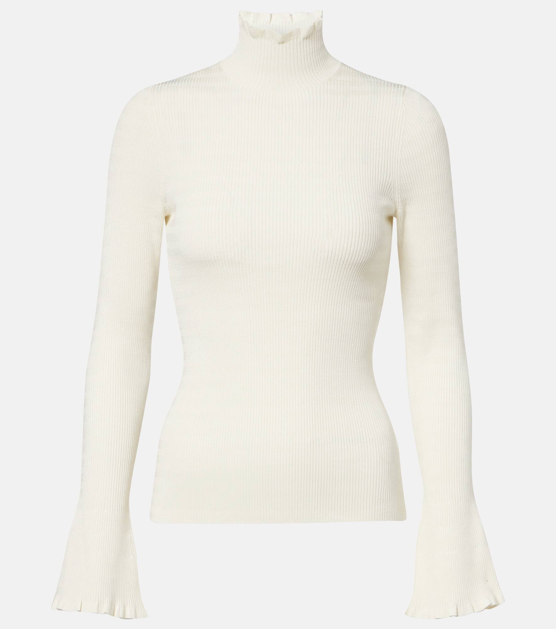 Drawing inspiration from contemporary art, Proenza Schouler ensures each design leaves a lasting impression. Part of the brand's White Label line, the Phyllis ribbed-knit sweater features a turtleneck and is complete with ruffled trims. Product Details - Material: 85% viscose, 12% polyamide, 3% elastane - Care instructions: dry clean - Made in China - Designer color name: Off White - Item color: white - Collar: mockneck - Cuff: ruffled - Hem: elasticated - Item number: P01104832 Size & Fit - True to size - Fitted - Stretchy fabric - Falls to the hip - The model seen in the picture is 178cm-5'10" and wearing a size XS
