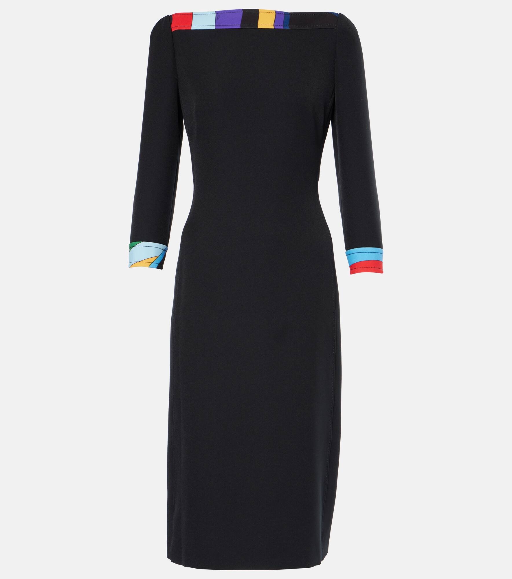 Product Details - Material: 98% polyester, 4% elastane - Care instructions: machine wash at 30 degrees - Made in Italy - Designer color name: Nero - Trim: 67% acetate, 33% polyester - Closure: zipped back - Item number: P00986979 Size & Fit - True to size - Cinched waist - Non-stretchy fabric - The model seen in the picture is 178cm-5'10" and wearing a size IT 40