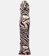 Marmo crystal-embellished printed satin-jersey halterneck maxi dress Pink