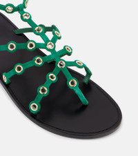 Enrich your vacation ensembles with the Emilio sandals from Pucci. Meticulously crafted from suede, this pair is defined by captivating eyelet detailing. Primed for walks along the coast and more, the style is completed with buckle fastenings that ensure a comfortable fit. Product Details - Upper: leather - Lining: leather - Sole: leather insole and sole - Toe shape: round open toe - Made in Italy - Includes: shoe box, dust bags - Designer color name: Smeraldo - Item color: green - Closure: buckle-fastening ankle strap - Hardware color: gold - Item number: P01044158 Size & Fit - True to size - Half sizes please take the next size up - European sizes - 1,5cm-0.5" heel (size EU 38)