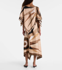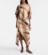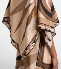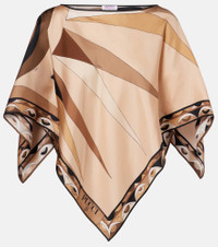 This Pucci cape is crafted from silk satin, has an asymmetric hemline, and is complete with the Hawaii print. The iconic psychedelic motif is a house signature, which earned the brand the title "Prince of Prints". Product Details - Material: 100% silk - Care instructions: dry clean - Made in Italy - Designer color name: Black Gold - Item color: brown - Hem: uneven - Each piece is unique and prints may differ slightly from those shown - Item number: P01111174 Size & Fit - True to size - One size: perfect fit for sizes XS-L - Designed for a loose fit - Non-stretchy fabric - Cropped