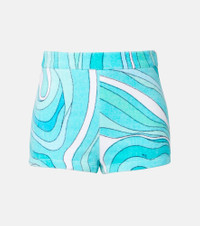 Made from cotton terry, these soft shorts are finished with an Iride pattern. The iconic psychedelic swirling motif is a brand signature, which earned Pucci the title "Prince of Prints". Product Details - Material: 100% cotton - Care instructions: dry clean - Made in Italy - Designer color name: Turquoise - Item color: blue - Details: 100% silk - Each piece is unique and prints may differ slightly from those shown - Closure: invisible zipper - Item number: P01111205 Size & Fit - True to size - Non-stretchy fabric - Slim-leg - High-waisted - The model seen in the picture is 178cm-5'10" and wearing a size IT 40
