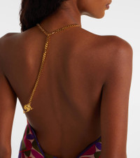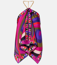 The iconic psychedelic swirling motif is a brand signature that earned Pucci the title "Prince of Prints." Crafted from silk twill, this sleeveless top features the Iride print and is finished with a gold-toned halterneck chain. Product Details - Material: 100% silk - Care instructions: dry clean - Made in Italy - Designer color name: Multicolor - Item color: multicolor - Hardware color: gold - Each piece is unique and prints may differ slightly from those shown - Item number: P01110728 Size & Fit - True to size - Low back - Designed for a loose fit - Non-stretchy fabric - Falls to the hip - One size