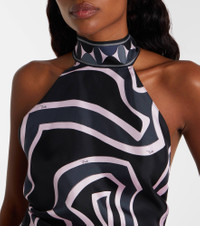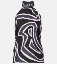 Effortless glamour meets signature color in this eye-catching sleeveless top from Pucci. Crafted in Italy from silk twill, the elegant piece is designed with a flattering halterneck silhouette and the iconic Iride print. Product Details - Material: 100% silk - Care instructions: dry clean - Made in Italy - Designer color name: Black Pink - Item color: pink, black - Self-tie neck and back - Each piece is unique and prints may differ slightly from those shown - Item number: P01110730 Size & Fit - True to size - Low back - Cinched waist - Adjustable hem - Non-stretchy fabric - Slightly cropped - One size