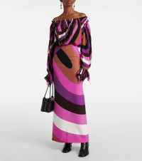 Product Details - Material: 100% viscose - Care instructions: dry clean - Made in Italy - Designer color name: Fuxia/Marrone - Elasticated sleeves - Item number: P00986987 Size & Fit - True to size - Off-the-shoulder - Designed for a loose fit - Non-stretchy fabric - Falls below the hip - The model seen in the picture is 178cm-5'10" and wearing a size IT 40