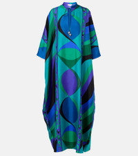 Embellished printed silk-twill kaftan Blue