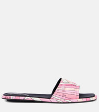 These Pucci thong sandals are made in Italy and are made from leather with twill uppers. The pair features a multicolored Iride print, one of the brand's most iconic motifs. Product Details - Upper: fabric - Lining: leather - Sole: leather insole and sole - Toe shape: square open toe - Made in Italy - Includes: shoe box, dust bag - Designer color name: Rosa - Item color: pink - Item number: P01044163 Size & Fit - True to size - Slightly narrow - Half sizes please take the next size down - European sizes