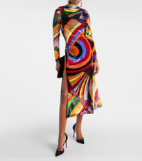 Product Details - Material: 75% viscose, 20% polyamide, 5% elastane - Care instructions: do not wash - Made in Italy - Designer color name: Arancio/ Verde - Collar: turtleneck - Closure: invisible zipper - Item number: P00892045 Size & Fit - True to size - Cinched waist - Stretchy fabric - slit length 55,0cm-21.5" - The model seen in the picture is 178cm-5'10" and wearing a size IT 40