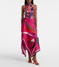 This Pucci top is crafted from silk satin, has a halter neckline, and is complete with the Labirinto print. The iconic psychedelic swirling motif is a house signature, which earned the brand the title "Prince of Prints". Product Details - Material: 100% silk - Care instructions: dry clean - Made in Italy - Designer color name: Multicolor - Item color: multicolor - Closure: self-ties - Each piece is unique and prints may differ slightly from those shown - Item number: P01111173 Size & Fit - True to size - One size: perfect fit for sizes XS-L - Low back - Cinched waist - Adjustable hem - Non-stretchy fabric - Slightly cropped
