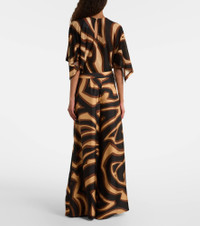 These Pucci pants are crafted from silk satin, have wide legs, and are complete with the Labirinto print. The iconic psychedelic swirling motif is a house signature, which earned the brand the title "Prince of Prints". Product Details - Material: 100% silk - Care instructions: dry clean - Made in Italy - Designer color name: Black Gold - Item color: black, brown - Closure: concealed zipped side - Each piece is unique and prints may differ slightly from those shown - Item number: P01111175 Size & Fit - Fits large to size - we recommend trying one size smaller - Non-stretchy fabric - Wide-leg - The model seen in the picture is 178cm-5'10" and wearing a size IT 38