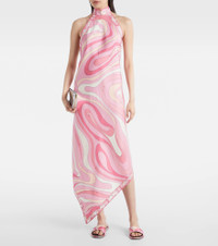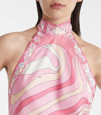 Halterneck printed silk-twill midi dress Pink