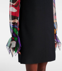 Printed silk chiffon-trimmed cady mini dress