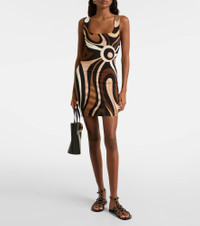 This minidress from Pucci is crafted from tight-fitting jersey and is topped with the Marmo print. The iconic psychedelic swirling motif is a house signature, which earned the brand the title "Prince of Prints". Product Details - Material: 95% viscose, 5% elastane - Care instructions: dry clean - Made in Italy - Designer color name: Black Gold - Item color: multicolor - Closure: concealed zipped back, hook-fastening back - Each piece is unique and prints may differ slightly from those shown - Item number: P01111030 Size & Fit - True to size - Fitted - Stretchy fabric - The model seen in the picture is 178cm-5'10" and wearing a size IT 40