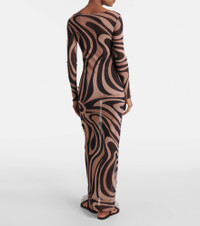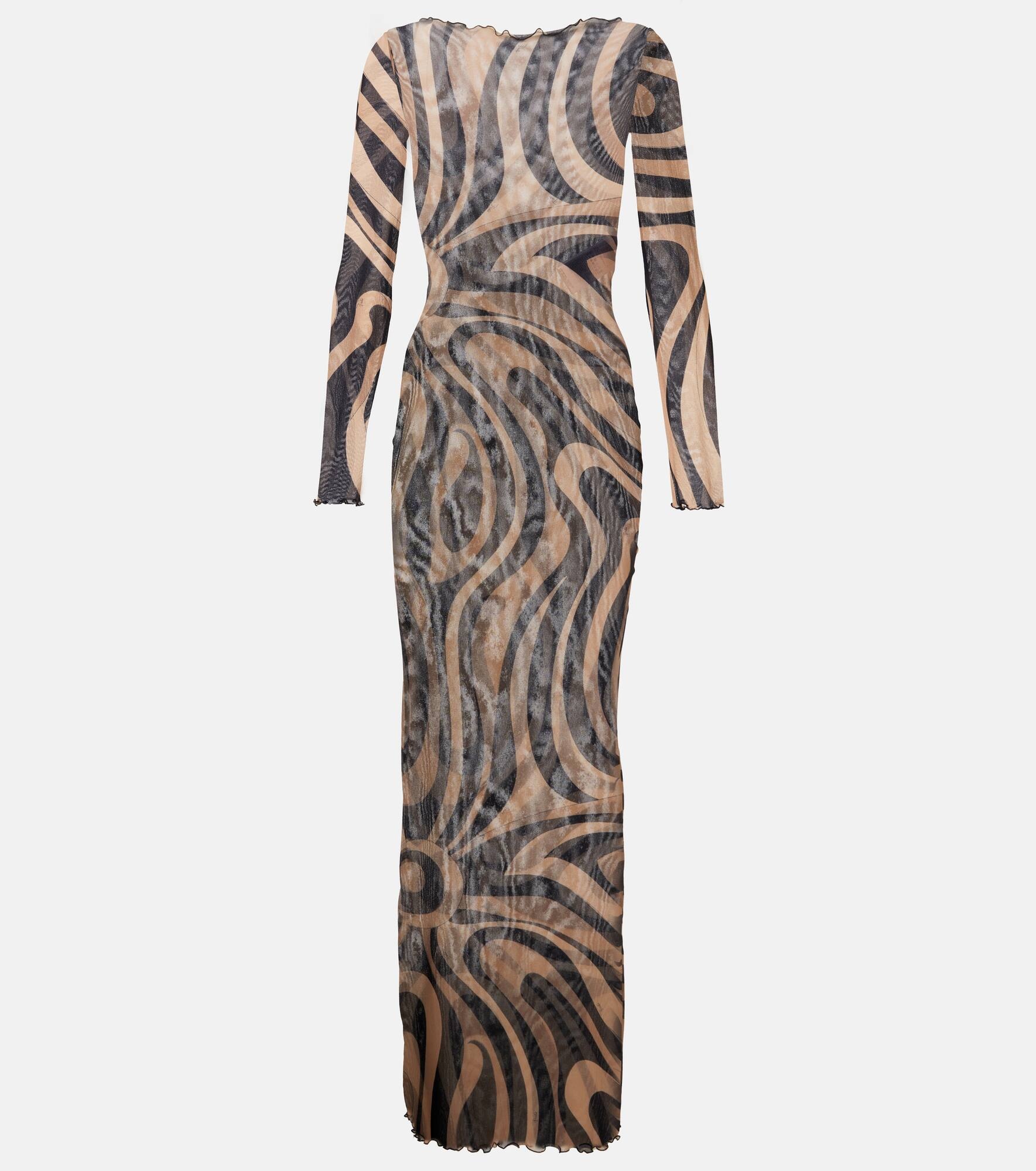 The iconic psychedelic swirling motif is a brand signature, which earned Pucci the title "Prince of Prints". The Marmo print is featured on this maxi dress, made from sheer mesh with a boat neckline. Product Details - Material: 100% polyamide - Care instructions: machine wash at 30 degrees - Made in Italy - Designer color name: Nero/Beige - Item color: beige - Item number: P01034838 Size & Fit - True to size - Semi-sheer - Fitted - Stretchy fabric - The model seen in the picture is 178cm-5'10" and wearing a size IT 40
