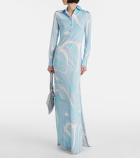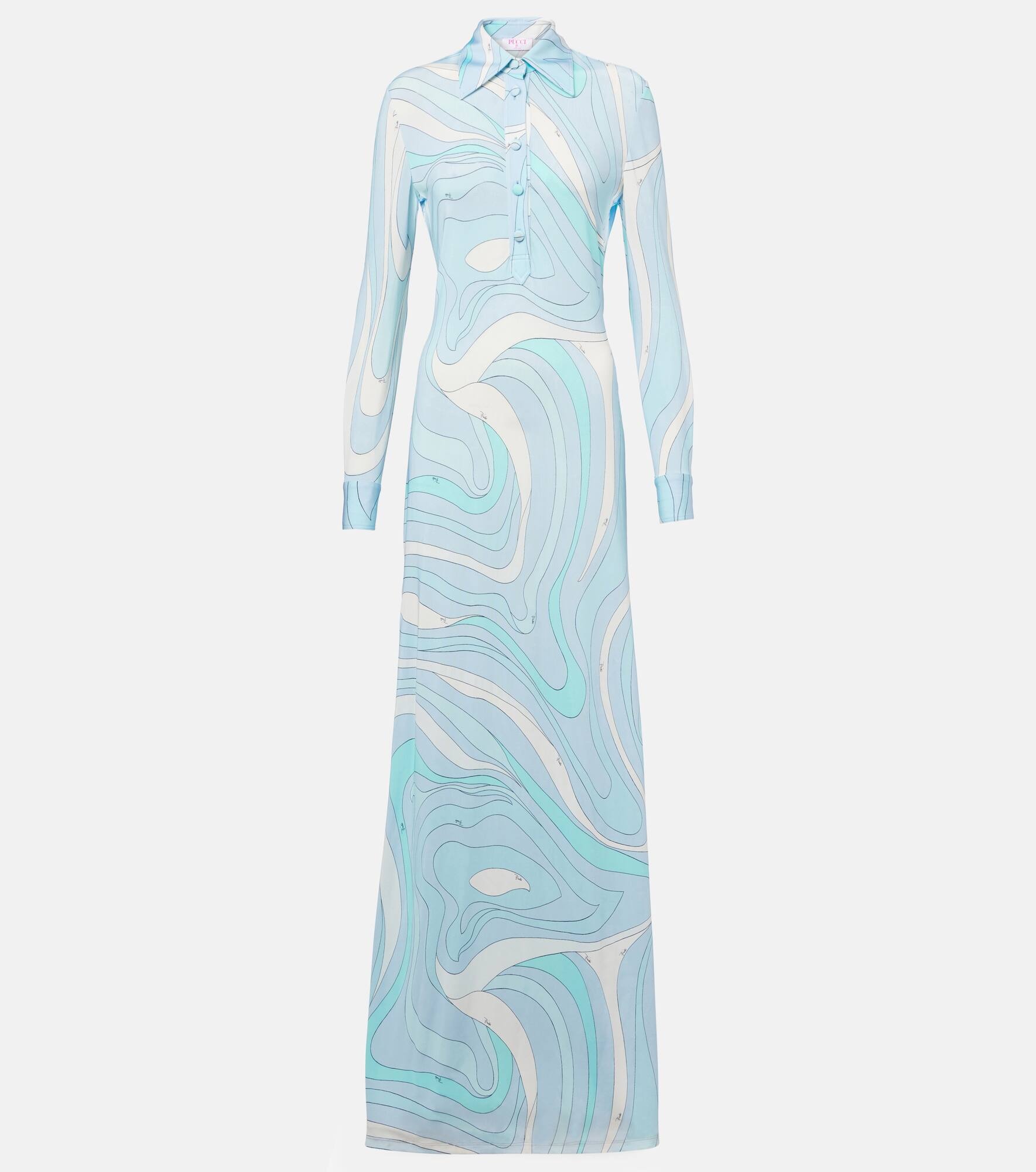 Product Details - Material: 95% viscose, 5% elastane - Care instructions: dry clean - Made in Italy - Designer color name: Aqua Marmo - Item color: blue - Closure: partially buttoned front - Cuff: two buttons - Each piece is unique and prints may differ slightly from those shown - Item number: P01040037 Size & Fit - True to size - Semi-sheer - Cinched waist - Stretchy fabric - slit length 79cm-31" - The model seen in the picture is 178cm-5'10" and wearing a size IT 40