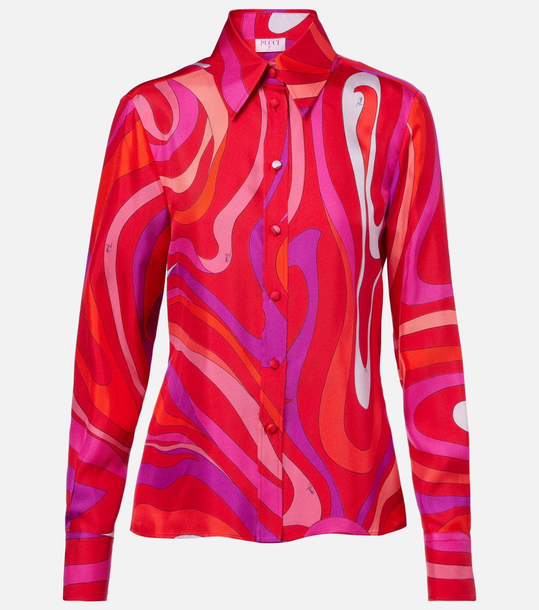 Crafted from silk, this shirt from Pucci features a flattering straight fit with a collar and buttoned-front closure. Complemented by the brand's all-over Marmo print, it puts a contemporary spin on a classic silhouette. Product Details - Material: 100% silk - Care instructions: dry clean - Made in Italy - Designer color name: Corallo/Fuxia - Item color: multicolor - Contains non-textile parts of animal origin - Closure: button-down - Each piece is unique and prints may differ slightly from those shown - Item number: P01034954 Size & Fit - True to size - Straight fit - Non-stretchy fabric - Falls to the hip - The model seen in the picture is 178cm-5'10" and wearing a size IT 40