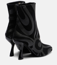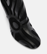 The iconic psychedelic swirling motif is a brand signature, which earned Pucci the title "Prince of Prints". Made in Italy from tonal suede and leather, these ankle boots are characterized by the brand's iconic Marmo pattern. Product Details - Upper: lamb leather (suede), leather - Lining: leather - Sole: leather insole and sole - Toe shape: round toe - Made in Italy - Includes: shoe box, dust bag - Designer color name: Nero - Item color: black - Closure: zipped side - Item number: P01128889 Size & Fit - True to size - European sizes - 9,5cm-3.5" heel (size EU 38)