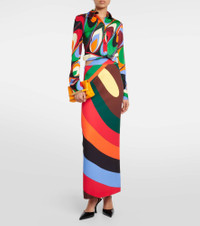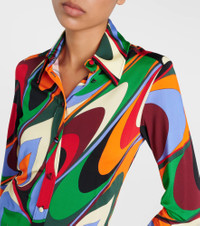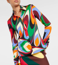 Part of Pucci’s Supernova collection, the Onde shirt brings back the ‘60s with a modern element. Made from crêpe, the playful design has a classic silhouette with a point collar and a buttoned front. Product Details - Material: 95% viscose, 5% elastane - Care instructions: dry clean - Made in Italy - Designer color name: Arancio/Verde - Closure: buttoned front - Buttoned cuffs - Item number: P00872575 Size & Fit - True to size - Cinched waist - Mid-weight material - Falls to the hip - The model seen in the picture is 178cm-5'10" and wearing a size IT 40
