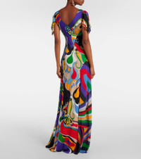 Orchidee and Iride-print maxi dress