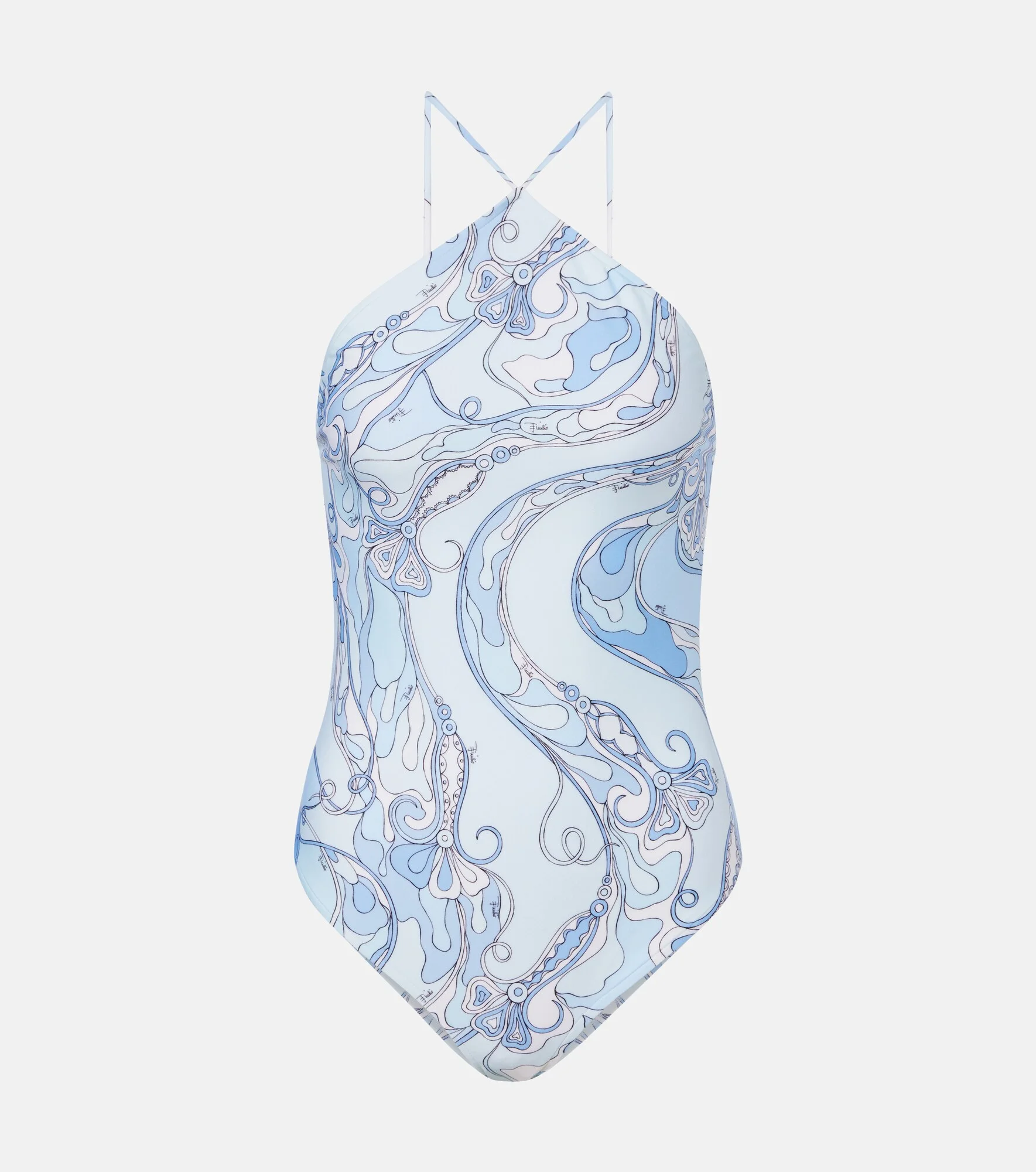 The iconic psychedelic swirling motif is a brand signature, which earned Pucci the title "Prince of Prints". This swimsuit features an open back with self-tie criss-cross straps and the Orchidee print. Product Details - Material: 80% polyamide, 20% elastane - Care instructions: hand wash - Made in Italy - Color: blue - Designer color name: Pale Blue - Lining: 84% polyamide, 16% elastane - Self-tie back - Includes: garment bag - Each piece is unique and prints may differ slightly from those shown - Item number: P01167391 Size & Fit - Fits large to size - we recommend trying one size smaller - Unpadded Top - Medium-cut leg - The model seen in the picture is 178cm-5'10", cup size B, and wearing a size XS