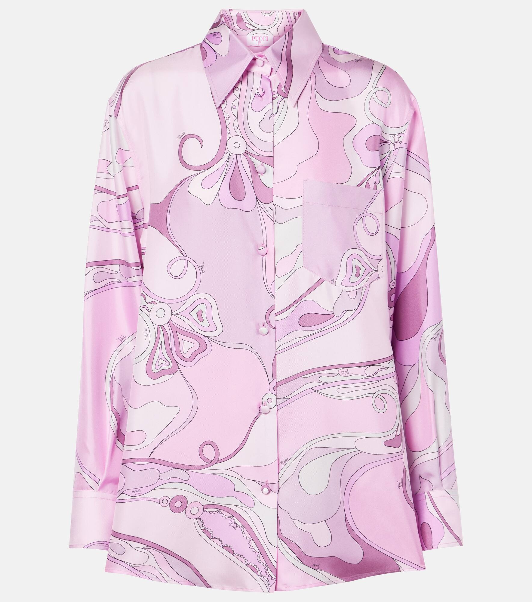 Product Details - Material: 100% silk - Care instructions: dry clean - Made in Italy - Designer color name: Peonia - Closure: button-down - Pockets: breast pocket - Item number: P00987056 Size & Fit - True to size - Dropped shoulders - Designed for a loose fit - Non-stretchy fabric - Falls below the hip - The model seen in the picture is 178cm-5'10" and wearing a size XS