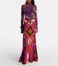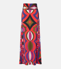 Printed jersey satin maxi skirt