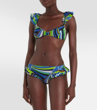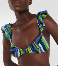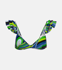 Printed ruffled bikini top