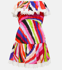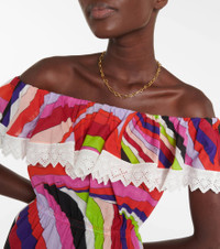The iconic psychedelic swirling motif is a brand signature, which earned Pucci the title "Prince of Prints". It decorates this strapless cotton minidress, that features a tiered skirt and delicate lace trims. Product Details - Material: 100% cotton - Care instructions: dry clean - Made in Italy - Trim: 40% polyester, 60% cotton - Item number: P00836392 Size & Fit - True to size - Off-the-shoulder - Loose fit, elasticated waist - Mid-weight material - The model seen in the picture is 178cm-5'10" and wearing a size IT 40
