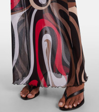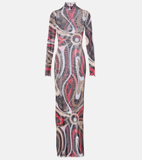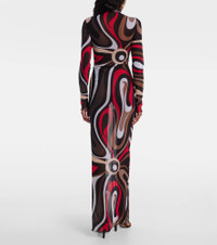 Printed tulle-trimmed jersey maxi dress
