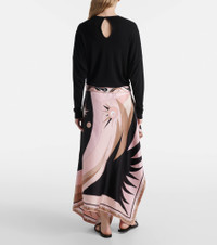 The iconic psychedelic swirling motif is a brand signature, which earned Pucci the title "Prince of Prints." The Stella midi dress features a silk skirt, offering a fluid, graceful movement that enhances the striking pattern. Product Details - Material: 100% viscose - Care instructions: dry clean - Made in Italy - Designer color name: Nero - Item color: black - Each piece is unique and prints may differ slightly from those shown - Closure: zip and button fastening - Material II: 100% silk - Item number: P01034896 Size & Fit - True to size - Dropped shoulders - Straight fit - Partly stretchy fabric - The model seen in the picture is 178cm-5'10" and wearing a size IT 40