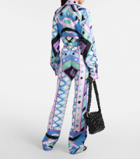 Product Details - Material: 100% silk - Care instructions: do not wash - Made in Italy - Designer color name: Celeste/ Bianco - Closure: zipper fly, button fastening - Elasticated waistband - Trim: 100% polyester - Item number: P00946417 Size & Fit - True to size - Elasticated waist - Non-stretchy fabric - Wide-leg - High-waisted - The model seen in the picture is 178cm-5'10" and wearing a size XS