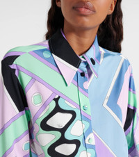 Product Details - Material: 95% viscose, 5% elastane - Care instructions: do not wash - Made in Italy - Designer color name: Celeste/ Bianco - Closure: buttoned front - Collar: classic (Straight point) - Cuff: buttoned - Each piece is unique and prints may differ slightly from those shown - Item number: P00946411 Size & Fit - True to size - Cinched waist - Stretchy fabric - Falls to the hip - The model seen in the picture is 178cm-5'10" and wearing a size IT 40