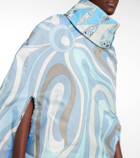 Italian luxury meets performance-driven French skiwear with the Pucci x Fusalp collaboration. This poncho is made from printed technical fabric with bold and colorful swirls, and features a high neck for warmth. Product Details - Closure: snap-buttoned fastenings - Made in Italy - Insert: 100% polyester - Designer color name: Celeste - Pockets: side slit pockets - Material: 100% polyamide - Care instructions: dry clean - Item number: P00770280 Size & Fit - True to size - One size: perfect fit for sizes XS-XL - Oversized - Mid-weight material - Falls below the hip - One size