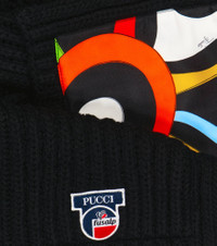 Italian luxury meets performance-driven French skiwear with the Pucci x Fusalp collaboration. This ribbed-knit wool scarf features bold and colorful nylon pockets, merging practicality with high-fashion prints. Product Details - Care instructions: dry clean - Material: 100% wool - Made in Italy - Item number: P00770212 Size & Fit - Length 224cm-88" - Width 22cm-8.5"