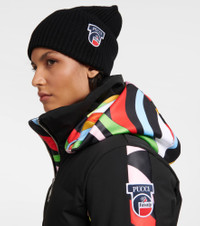 Italian luxury meets performance-driven French skiwear with the Pucci x Fusalp collaboration. This beanie is made in Italy from pure wool in a ribbed-knit silhouette with a wide fold-over edge and stitched logo patch. Product Details - Care instructions: dry clean - Material: 100% wool - Made in Italy - Item number: P00770202
