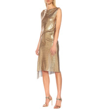 Paco Rabanne shot to success in the '60s due to its use of unconventional materials, and it continues to further its reputation for offbeat design with pieces like this dress. The shimmering silhouette has been crafted in France from a draped golden mesh that is held together by tonal snap buttons. Elevate yours with barely-there sandals and minimal accessories to let it do all the talking. Product Details - Care instructions: hand wash - Made in France - Item number: P00370004 Size & Fit - True to size - Semi-sheer - Relaxed fit from the hip down - Mid-weight material - The model seen in the picture is 178cm-5'10" and wearing a size FR 36